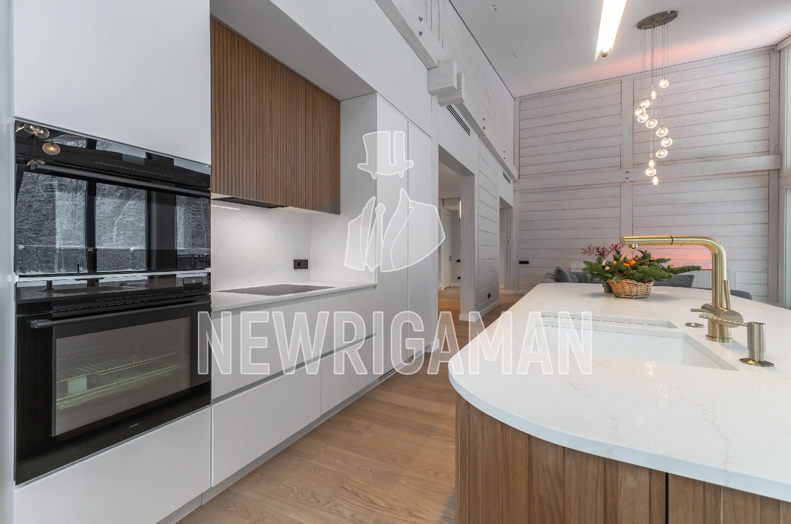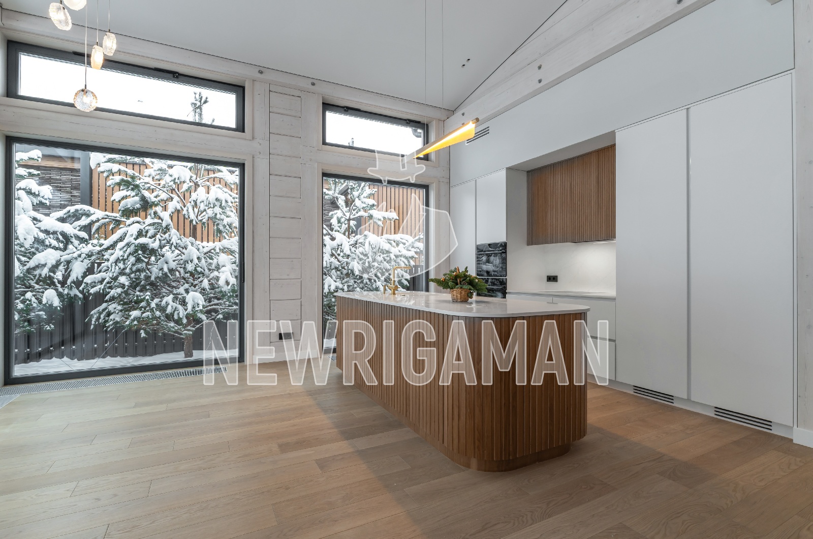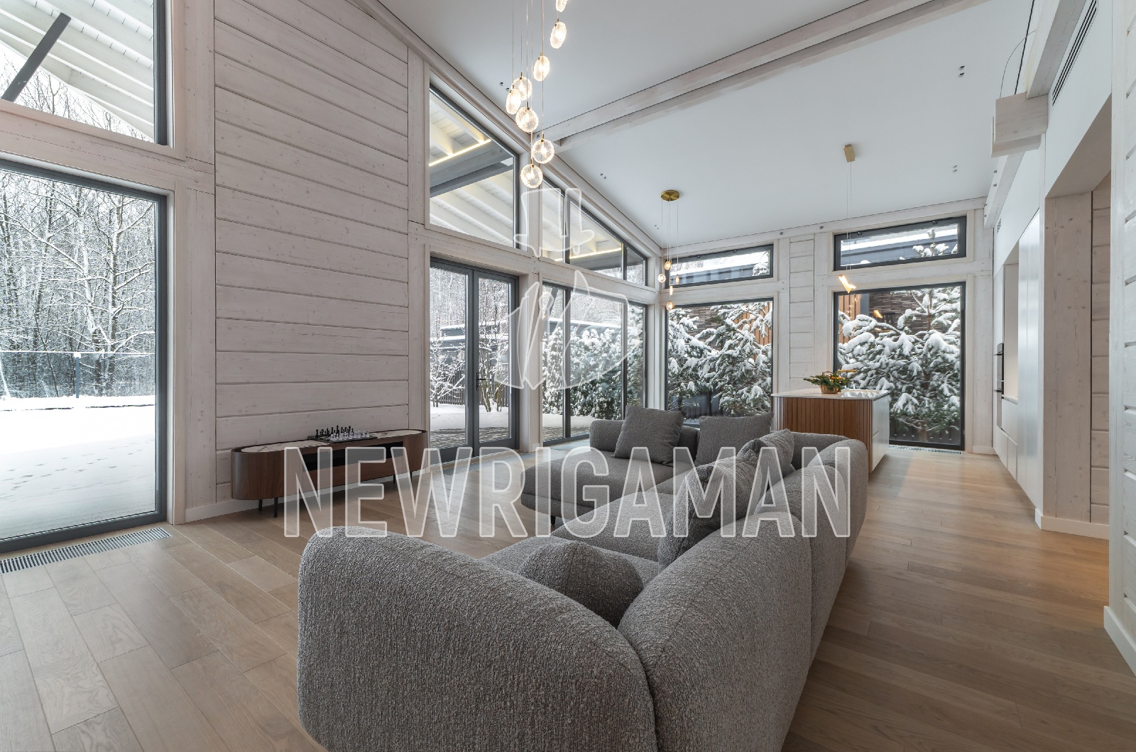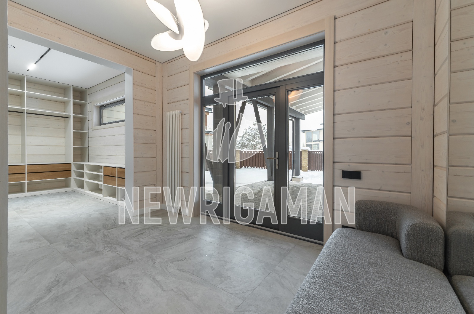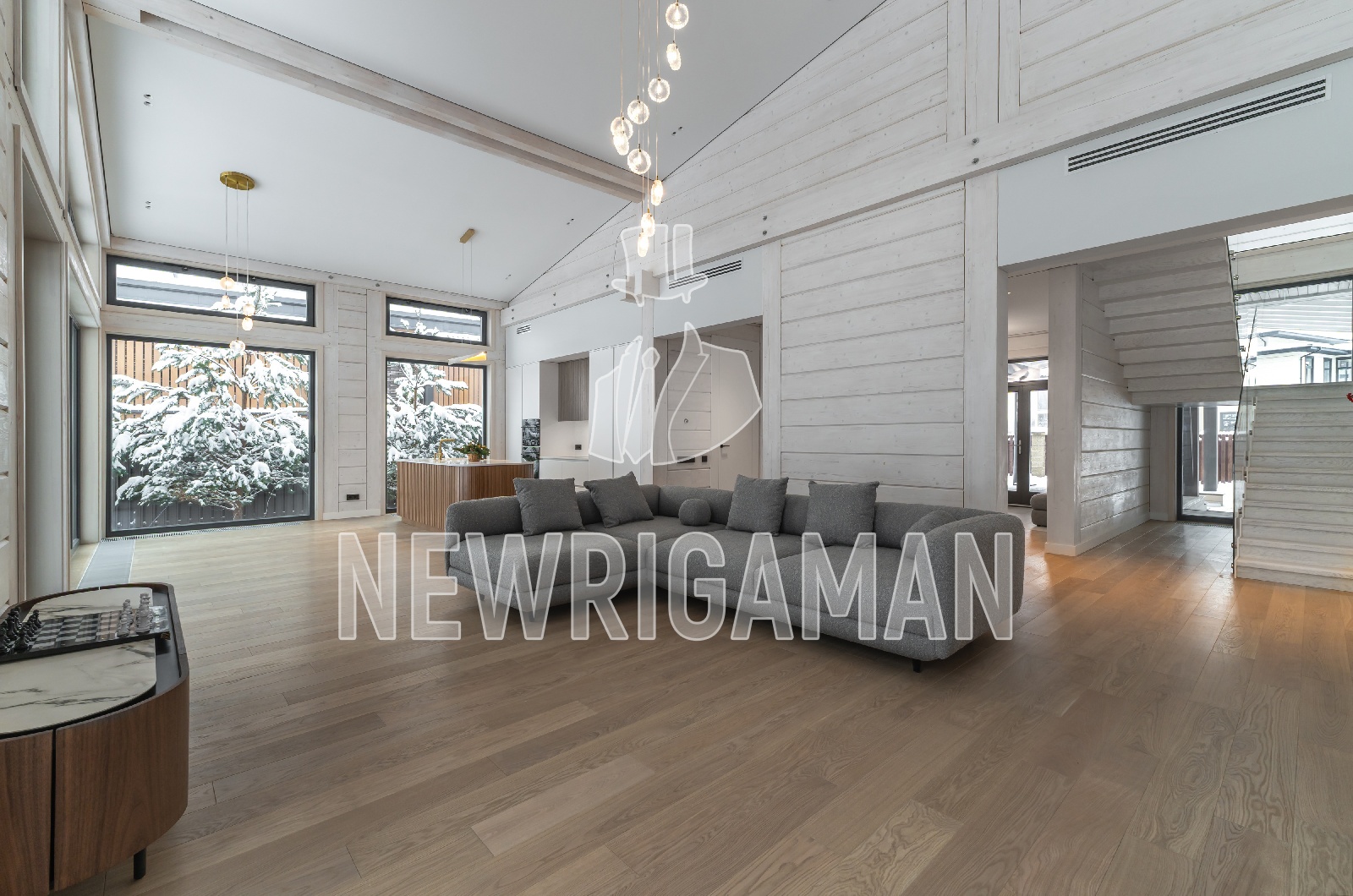 1 этаж - прихожая , большая гардеробная, холл, кухня - гостиная -столовая с выходом террасу, кабинет-гостевая спальня с выходом на террасу, с/у с сауной, постирочная, 2 кладовые, бойлерная,