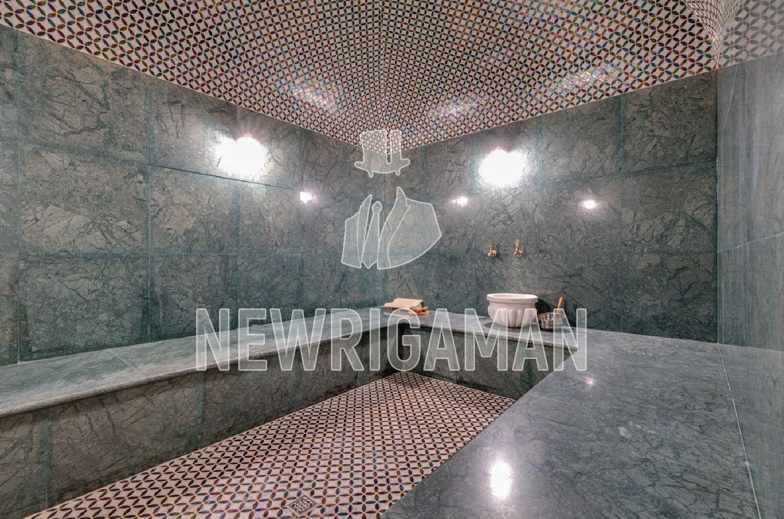 1 этаж - прихожая, гардеробная комната, гостевой с/у, кухня с выходом на террасу, кладовая при кухне, столовая, гостиная с камином и выходом на террасу, учебная/игровая комната, гостевая спальня с с/у, СПА-зона с выходом на террасу: комната отдыха, бассейн, хаммам, с/у с душевой, гараж на 2 м/м., квартира для персонала с отдельным входом,