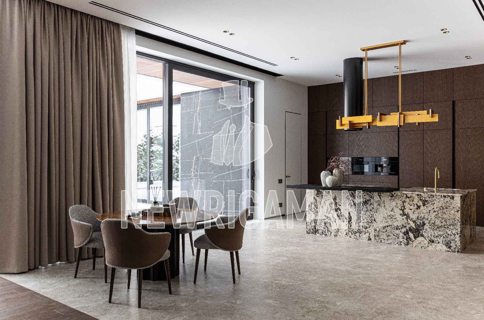 Продажа загородного дома общей площадью 1066 кв.м. Новорижское шоссе, 19 км от МКАД. Коттеджный поселок Миллениум Парк. Дом построен в 2 этажа, под ключ. Расположение у канала и продуманная геометрия дома создают атмосферу закрытого, цельного мира, скрытого от внешнего ритма. Архитектура дома выстроена в логике Ф. Л. Райта вытянутые пропорции, выверенные объёмы, глубокие свесы кровли и подчёркнутая горизонталь. В отделке фасадов использованы крупноформатный керамогранит, лиственница и сланец, создающие спокойный, сдержанный ритм и визуальную связь с окружающим ландшафтом. Интерьер решён в современном стиле с акцентом на натуральные материалы и тактильные поверхности. В отделке применены травертин, мрамор, керамогранит Italon, Atlas Concorde, Rex, итальянская декоративная штукатурка Arreghini, панели из дуба и дубового шпона. Дом укомплектован мебелью, элементами декора и техникой Miele. Трёхсторонний камин гильотинного типа Piazzetta становится визуальным центром гостиной, задавая камерное настроение вечернего времени. Панорамные алюминиевые окна ALUTECH высотой 3,43,6 м и высокие потолки усиливают ощущение света и масштаба. Скрытые двери с алюминиевым профилем поддерживают чистоту линий. SPA-зона с панорамной раздвижной системой ориентирована на участок и воспринимается как продолжение интерьера. Микроклимат поддерживается приточно-вытяжной вентиляцией, канальным кондиционированием, внутрипольными конвекторами и системой тёплых полов. Участок оформлен ландшафтным дизайном с продуманной геометрией дорожек, газоном, фигурными кустарниками и взрослыми деревьями высотой 811 м. Туи по периметру формируют приватность, а вечернее освещение мягко подчёркивает архитектуру дома. Реализованы системы полива и дренажа, перед гаражом предусмотрена удобная парковочная зона. Площадь участка 22 сотки.
