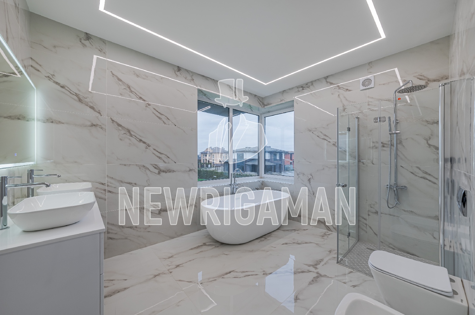 1 этаж - кухня, гостиная-столовая с выходом на террасу, спальня, с/у, постирочная, гардеробная, котельная,