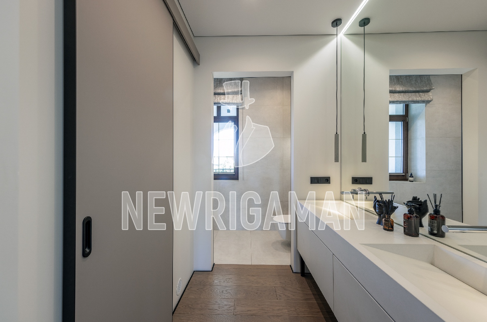 2 этаж - 3 спальных блока, каждый со своим санузлом и гардеробной,